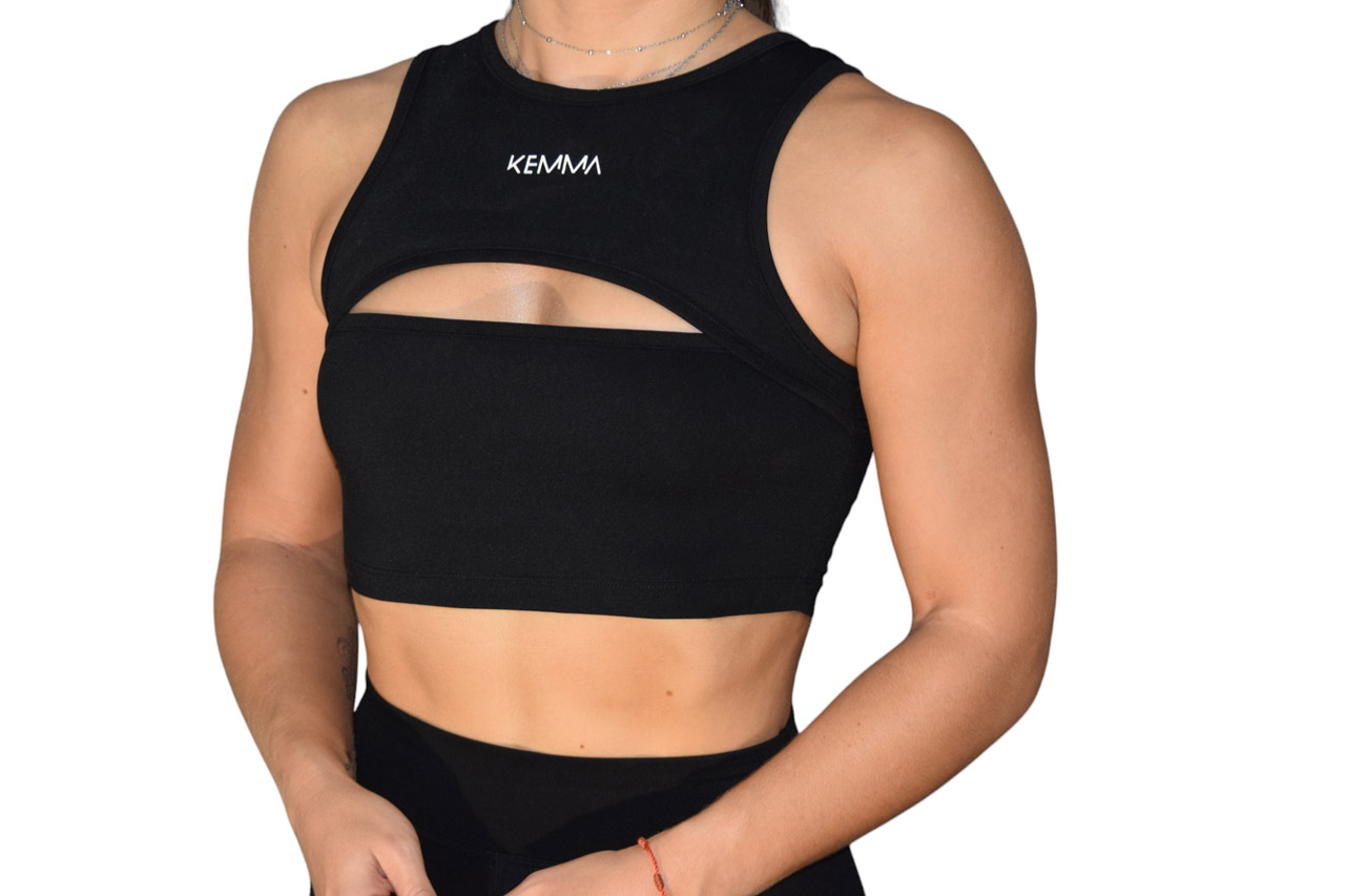 Tienda / Tops / Top Deportivo con Detalle de Abertura – Diseño Ajustado y Transpirable – Negro
